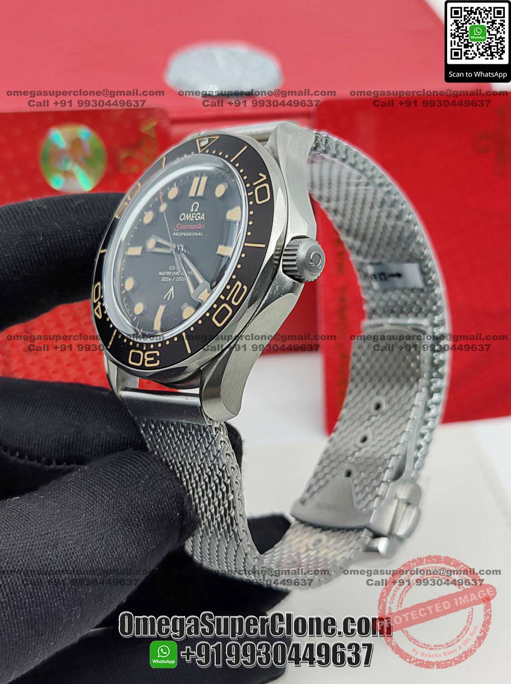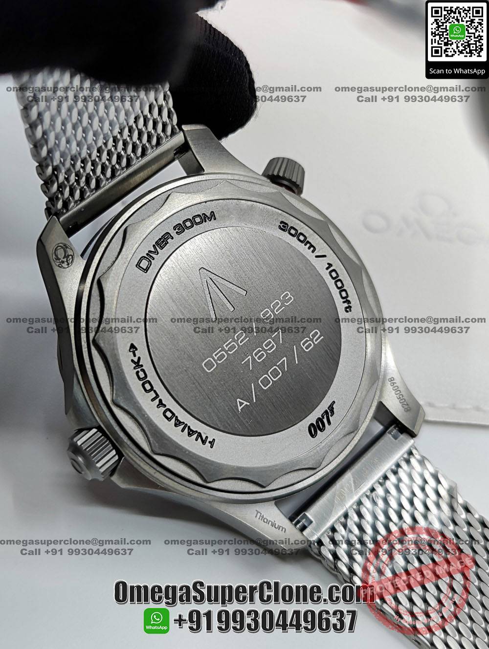 | CASE | – 42mm – Made of Real Grade 2 Titanium – Titanium Case Back with NAIAD Lock mechanism and 007 and British Army Symbols Laser Engravings – Dimensions and Weight is Exact 1:1 Identical with Original |